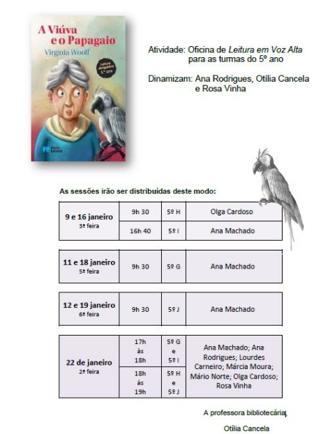 Como em anos anteriores, no âmbito da articulação com o currículo, a biblioteca promove uma oficina de leitura em voz alta para todas as turmas de 5.º ano, tendo por base a obra "A viúva e o papagaio", trabalhada na disciplina de português.